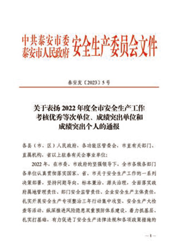 中共泰安市委泰安市人民政府安全生產委員會文件